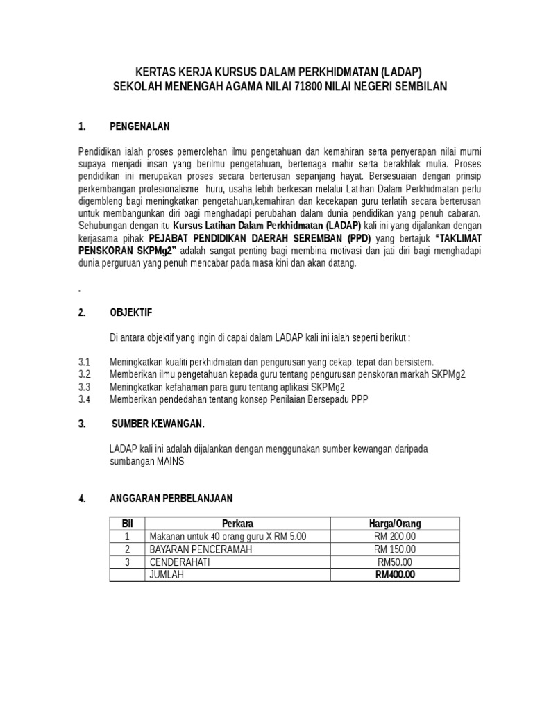 Contoh Kertas Kerja Program Motivasi December 2021 0. Rujuk Lampiran 1. 101Kos Perbelanjaan Program.